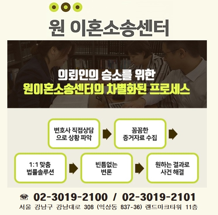 이혼으로 법적 도움이 필요하다면 철저한 법리분석과 냉철한 상황 판단으로 맞춤형 법률서비스를 제공하는 원이혼소송센터 원가족법센터 변호사들의 도움을 받아보자